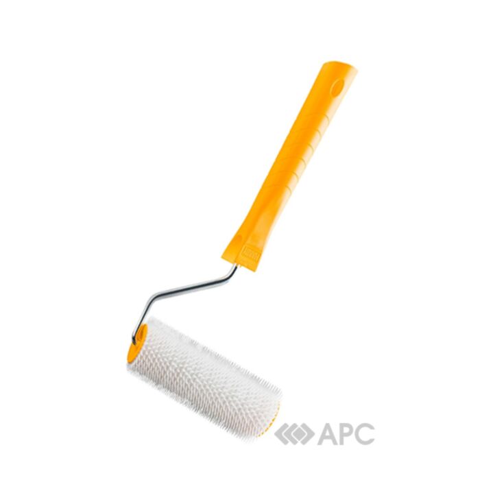 Голчастий валик подібного типу використовується при створенні підлогових стяжок і наливної підлоги. Застосовується для видалення бульбашок повітря, які можуть знизити міцність покриття. Також дана процедура прокатування дозволяє вирівняти суміш. Не слід плутати представлений валик з голчастим валиком для гіпсокартону. Незважаючи на схожі назви, призначення у них абсолютно різне. У той час як валик для стяжки видаляє бульбашки повітря, валик для гіпсокартону оснащений гострими голками-ножами для «проколювання» ГКП. Це необхідно для здійснення деформації плити при створенні фігурних конструкцій.