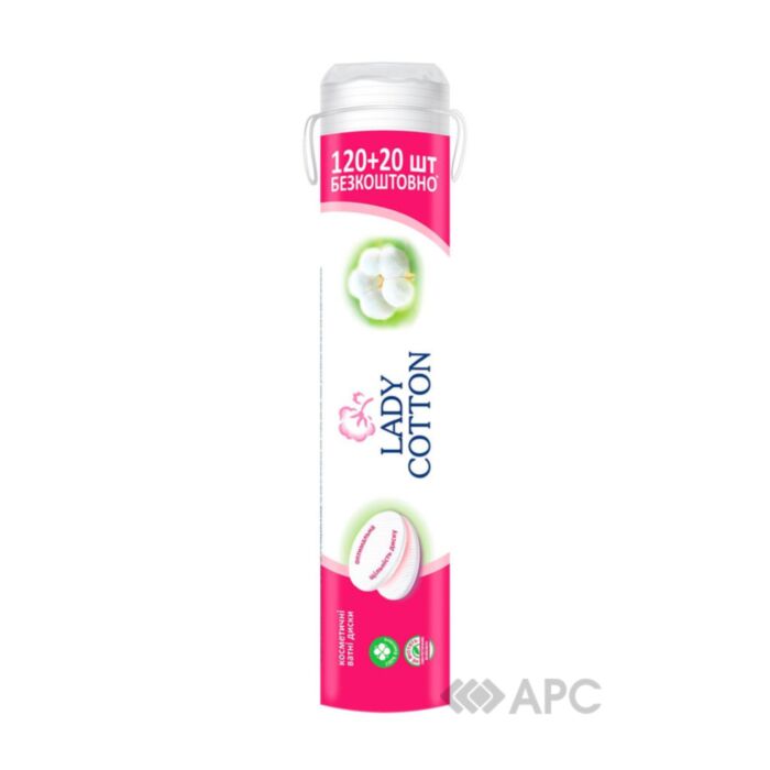 Ватні диски Lady Cotton косметичнi 120+20 шт — це необхідний елемент у щоденному догляду за обличчям, оскільки забезпечує якісний догляд за шкірою та чистоту. Виготовляються з м’якої 100% бавовни, що дарує ніжність, а також гладкість при контакті з тілом. Мають круглу форму, відмінну щільність, що дуже зручно при використанні, адже вони не залишають ворсинок. Ідеально підходять для зняття макіяжу, нанесення косметичних засобів, очищення шкіри та інших процесів. Упакування містить 140 штук, яких вистачить на тривалий період користування.