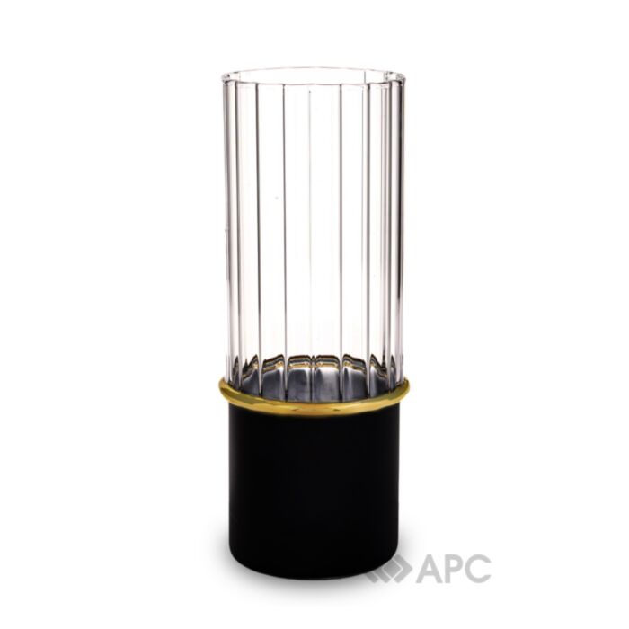 Скляна ваза з комбінованим фарбуванням чорного та прозорого кольорів із золотим обідком додасть витонченості вашому інтер'єру. Колір, форма і фактура роблять її універсальною для будь-якого інтер'єру.