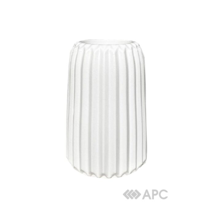 Ваза Cute велика біла – це стильний акцент, що привнесе в інтер'єр елегантність та унікальність. Виготовлена з гіпсу, вона має рельєфну поверхню з витонченими вертикальними смугами, які створюють цікаву гру світла та тіні. Її благородний сірий відтінок з блакитними нотками імітує текстуру каменю, додаючи простору особливого шарму.
