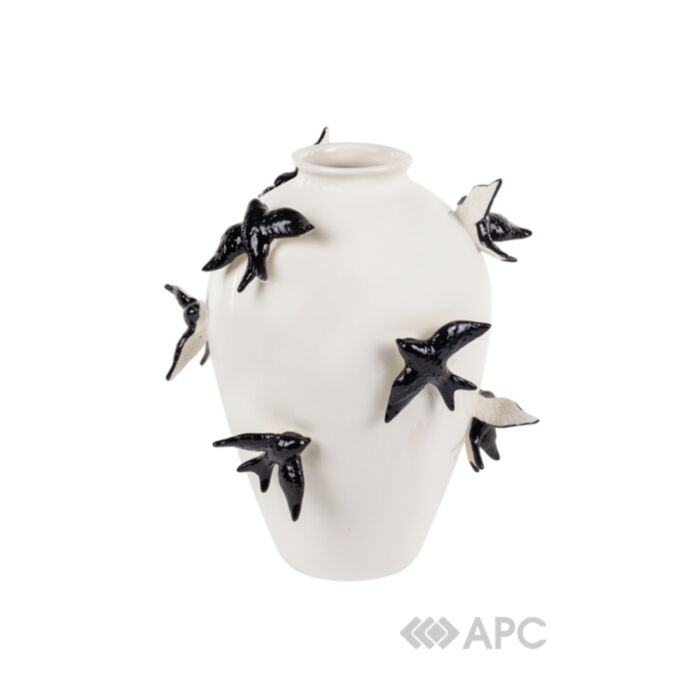Ваза Elendekor Ластівки 626-009 24*24*27,5 см – це витончений предмет декору, який приносить у дім атмосферу весняного оновлення та легкості. Виріб має об'ємний та самодостатній вигляд, що дозволяє використовувати його як для пишних флористичних композицій, так і як самостійний арт-об'єкт. Ваза виготовлена з високоякісної кераміки, яка вирізняється екологічністю та стійкістю, а її поверхня прикрашена деталізованим рельєфним зображенням ластівок, що символізують надію та благополуччя. Майстерне поєднання текстур і витончених ліній робить цей аксесуар ідеальним доповненням для інтер'єрів у стилі класика, прованс або скандинавський мінімалізм. Така ваза стане чудовим подарунком, що підкреслить вишуканий смак господаря та додасть простору особливого художнього шарму.