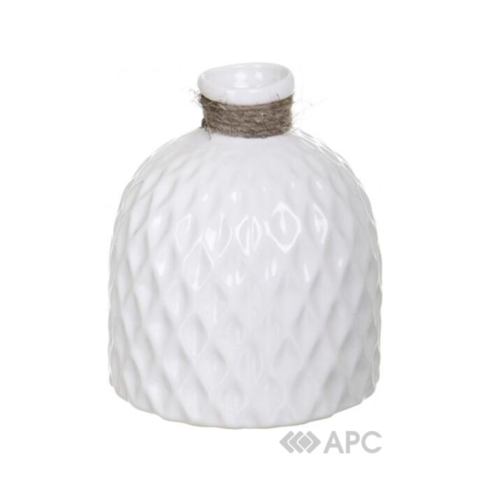 Керамічна ваза Eterna поєднує в собі оригінальність з максимальною практичністю. Її форма - це екзотичний мішечок тубільця з ребристою поверхнею, перетягнутий зверху крафтовою мотузкою. Колір, форма і фактура роблять її універсальною для будь-якого інтер'єру.