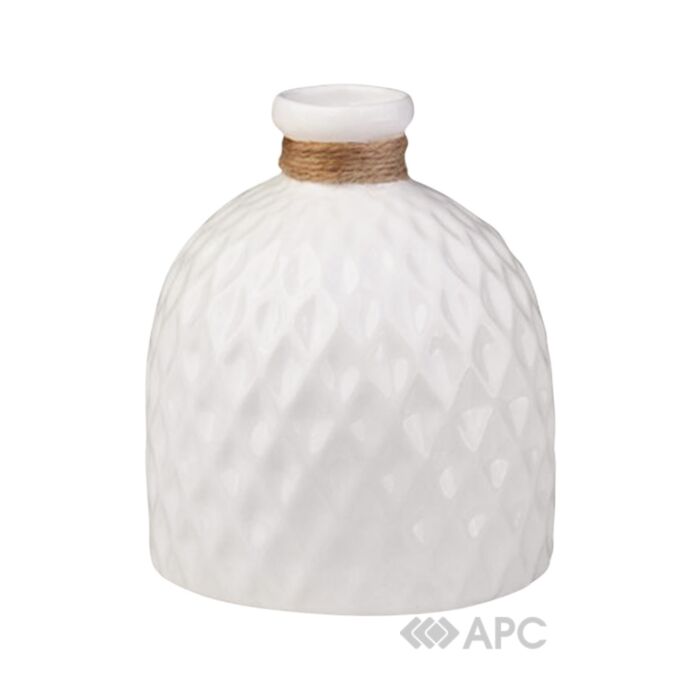 Керамічна ваза Eterna поєднує в собі оригінальність з максимальною практичністю. Її форма - це екзотичний мішечок тубільця з ребристою поверхнею, перетягнутий зверху крафтовою мотузкою. Колір, форма і фактура роблять її універсальною для будь-якого інтер'єру.