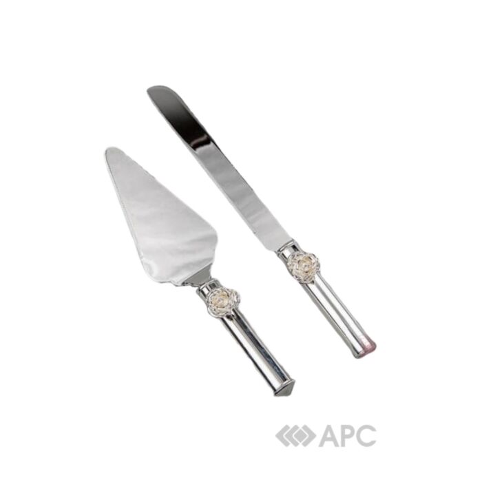 Ніж та лопатка для торта Троянди 045G доповнять та прикрасять ваш святковий стіл. Таким весільним набором Ви зможете доповнити весільну тематику, та ваше свято набуде ще більшої елегантності та витонченості.