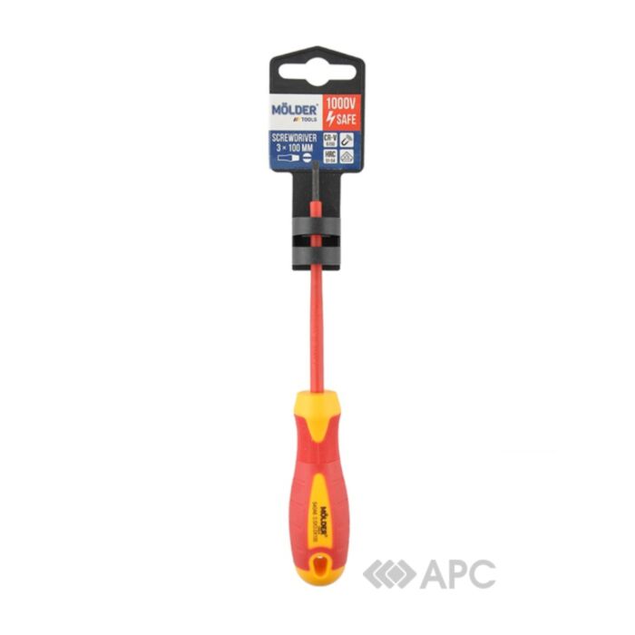 Викрутка діелектрична шліцьова Molder MT35002 VDE 1000В SL3*100 мм - це надійний і безпечний інструмент, розроблений для використання в електричних умовах. Вона має наступні основні характеристики: