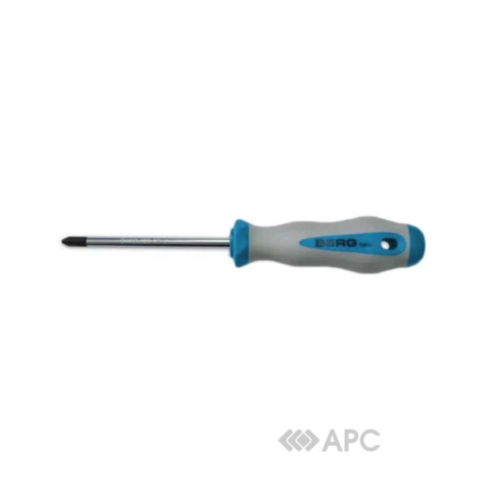 Викрутка хрестоподібна Berg 46-156 серії Turn, яка характеризується високою якістю та сучасним дизайном. Стрижень виготовлений з хром-ванадієвої сталі твердістю 52-56 HRC. Захист від корозії забезпечений хромовим покриттям. Довжина стрижня становить 150 мм, а шліца - 2 мм. Пластикова ручка покрита шаром гуми для кращої фіксації інструмента в руці. Намагнічений наконечник дозволяє виконувати роботу однією рукою навіть в важкодоступних місцях. Інструмент потрібно використовувати з елементами кріплення, які мають шліц типу PH.