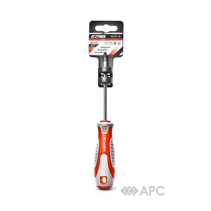 Stark 502301100 — високоякісна викрутка з хром-ванадієвої сталі (CrV) з формою шліца PZ1. Матеріал виробу є популярним у виготовленні ручного інструменту завдяки стійкості до дії корозії і високій твердості (51-54 HRC). Дана викрутка — необхідний інструмент, який сміливо можна віднести до базових елементів будь-якого набору, в тому числі і професійного. У ергономічній ручці розташований зручний підвіс.