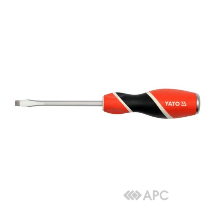 Викрутка плоска Yato YT-25986 з прямим шліцом типу SL 6 мм є базовим інструментом в основному арсеналі майстра ремонту. Плоский шліц є поширеною формою для простих з'єднань з використанням шурупів, гвинтів та інших елементів. Прямий шліц часто буває зручніше хрестоподібного (PH/PZ), оскільки пряма форма дозволяє закручувати шурупи як зі шліцом типу «-», так і «+», якщо не потрібні надмірні зусилля. Таким чином, купуючи одну викрутку можна отримати дві: основну плоску і часткову заміну хрестоподібної.