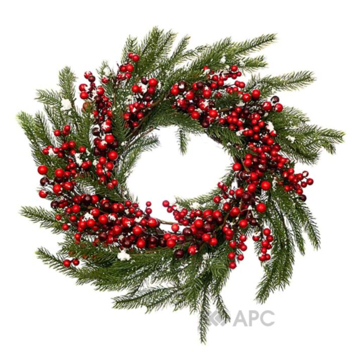 Вінок новорічний Elisey 001NF Ялинковий ягідний можна почепити, як на вхідні двері, так і поставити на стіл або ж журнальний столик, витончено прикрасивши декоративними стилізованими підсвічниками, квіткою Пуансетії, новорічними іграшками та застеливши різдвяну скатертину.
