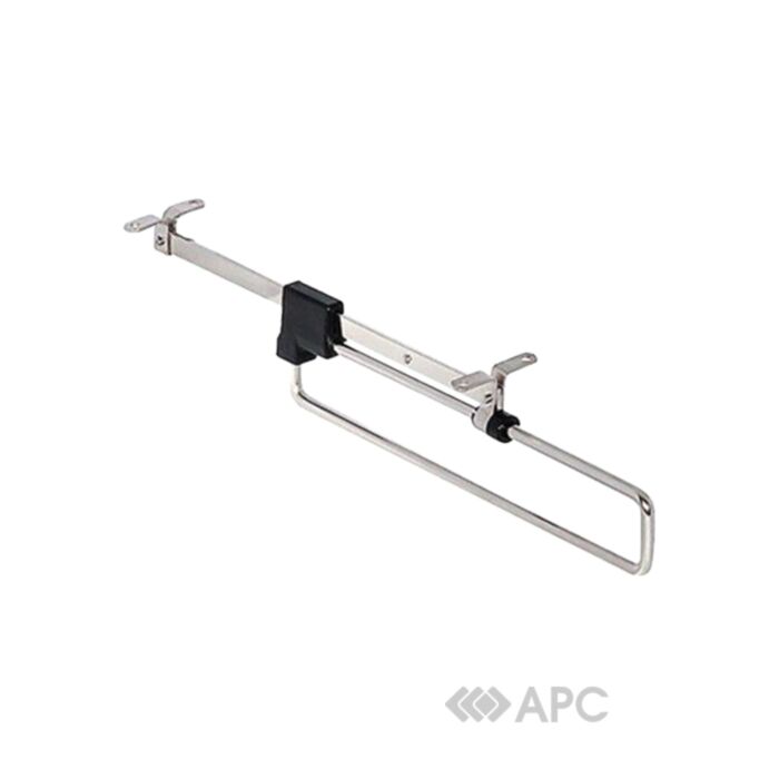 Висувна гардеробна штанга-вішалка 410 мм - призначена для зручного та компактного організованого зберігання одягу в шафі. Має висувний механізм з пластмасовою направляючою, що полегшує доступ до речей, тримаючи їх у відповідному порядку. Виготовлена з міцної сталі та покрита нікельованим шаром, гардеробна штанга не лише надійна, але й стійка до корозії. Завдяки своїй конструкції, здатна утримувати вагу до 6 кг, що робить її ідеальним рішенням для підтримки легкої та середньої ваги тканини.