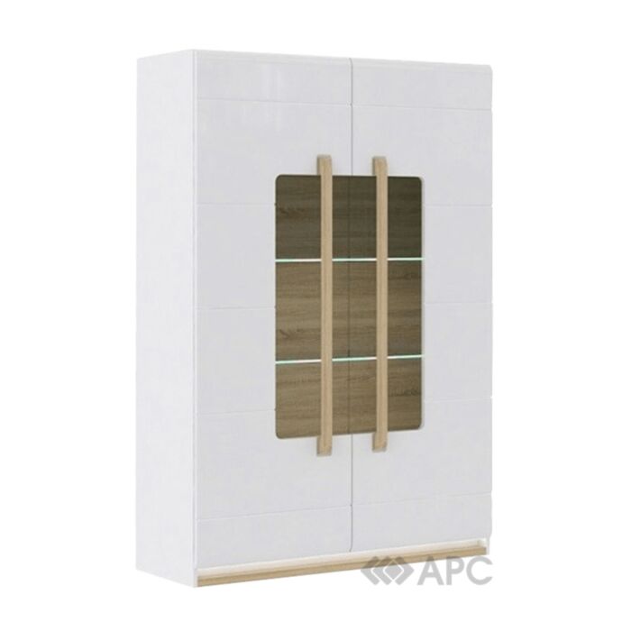 Меблі ATTENTION FORTE звертають на себе увагу стильним асиметричним дизайном і незвичайною підсвіткою цокольних частин модулів. Корпус виконаний з ДСП в кольорах «білий матовий / дуб сонома», фасади - МДФ «білий глянцевий / дуб сонома». Планки та ручки надають оригінальності всій колекції. Скляні полички вітрин укомплектовані підсвіткою. Білосніжні глянцеві фасади розділені на сегменти і плавно скошені зверху та знизу. Меблі ATTENTION FORTE дозволяють створити унікальні набори для вітальні та столової.