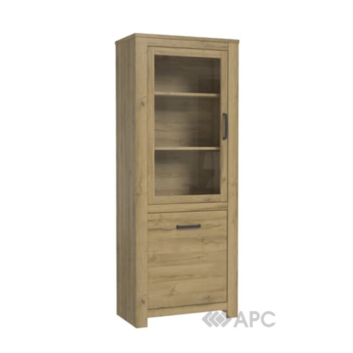 Вітрина ліва HVNV711L з колекції HAVANNA, це колекція меблів для вітальні і їдальні в сучасному стилі. Меблі зроблені в декорі "дуб античний" на якому є прості чорні ручки, вони добре контрастують з вираженою фактурою дерева. Потовщені бічні смуги надають меблям масивний вигляд. Колекція виготовлена з високоякісної ламінованої плити з підвищеною стійкістю до подряпин і пошкоджень. Широкий асортимент елементів колекції HAVANNA дозволяє створити практичні набори для вітальні, їдальні і навіть спальні.