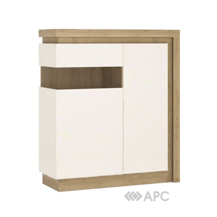 Випускається в кольорах: рів'єра дуб світлий / білий глянець. Колекція меблів Lyon виготовляється з високоякісної ламінованої ДСП з використанням МДФ, підвищеної стійкості до подряпин, вологості і високих температур.