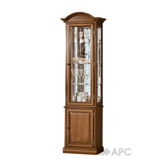 Елегантна шафа - вітрина виконана в благородному класичному стилі. Прозора дверцята і бічні панелі, скляні полки надають шафі легкість, витонченість. Завдяки дзеркальній задній стінці і галогенним світильникам те, що Ви поставите всередину шафи, буде виглядати дуже ефектно.