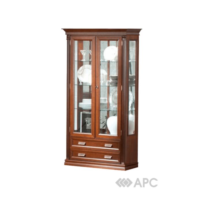 Респектабельна шафа - вітрина виконана в стилі "класік". Прозорі дверцята, скляні бічні панелі і полки надають шафі легкість, витонченість. Завдяки дзеркальній задній стінці і двом галогеновим світильникам те, що Ви поставите всередину шафи, буде виглядати особливо ефектно.