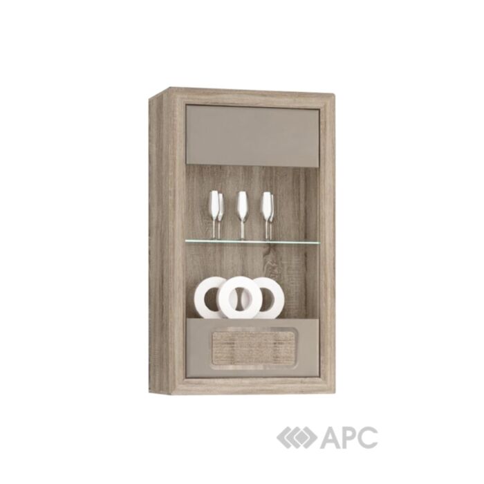 Вітрина TIZIANO TZV11LB дуб античний/бежевий глянець для вітальні або їдальні може бути використана як частина композиції або як абсолютно окремий самостійний елемент інтер'єру. Висота вітрини - 128,5 см. Це вище лінії комодів і телевізійних тумб, але істотно нижче високих меблевих елементів. Часто саме така висота дозволяє отримати більше простору в інтер'єрі. Меблі було зроблено в декорі античного дуба і бежевого кольору.