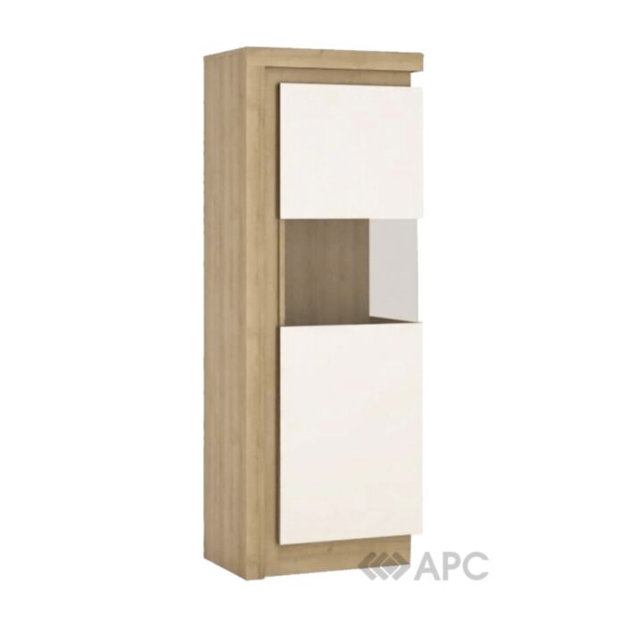 Вітрина Lyon TYP LYOV01 від польської фабрики Wójcik (Войчик). Складається з одних частково засклених дверей. В середині чотири полки. Окремо можна докупити підсвічування двох типів: внутрішню для підсвічування вітрин, і зовнішню для декору.