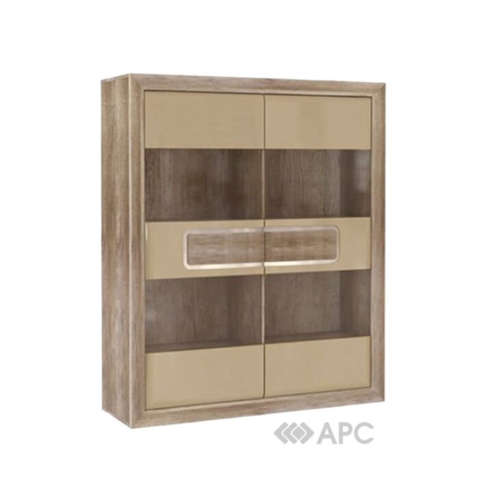 Колекція "Tiziano" - це поєднання глянцевої поверхні зі вставками з деревної текстури, які стали справжнім хітом продажів в останні роки. Добре підібрані кольори прекрасно виглядають в житловому приміщенні. Родзинкою колекції меблів "Tiziano" є виразні заокруглені вставки, які служать ручками. Вітрина TIZIANO TZV54B для вітальні або їдальні може бути використана не лише як частина всієї композиції. Ви можете придбати вітрину у якості окремого самодостатнього елементу інтер'єру. Висота виробу - 155 см. Це вище лінії комодів та телевізійних тумб, але суттєво нижче високих меблевих елементів. Часто саме така висота дозволяє отримати більше простору в інтер'єрі. Фасади вітрини - МДФ і скло. Внутрішній простір красиво підсвічується спеціальним освітленням.