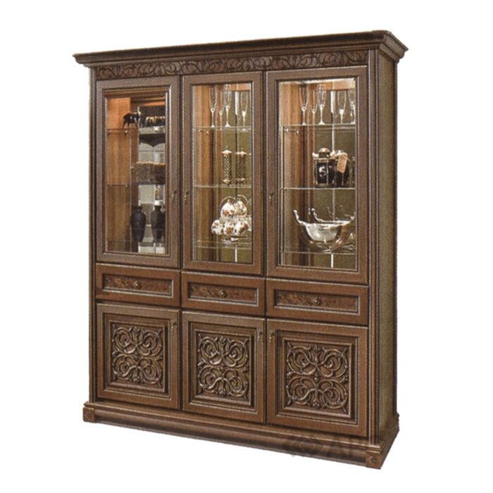 Вітрина тридверна Тоскана варіант №2 - це справжній витвір мистецтва. Родзинкою даної моделі є акуратне і дуже красиве різьблення. Вишуканий дизайн зробить щоденну домашню обстановку в рази святковішою.
