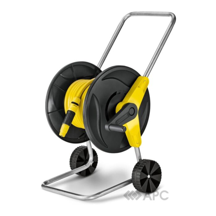 Візок для шланга Karcher — це необхідна річ від німецького виробника для тих, хто має довгий, важкий шланг. Допомагає з легкістю переносити його в інше місце та комфортно зберігати на котушці, коли він не використовується. Основа виготовлена із якісного металу, котушка та ручка із міцного пластику у чорно-жовтому кольорі, що робить виріб меншим за вагою. Легко намотується без особливих зусиль, простий у використанні. Надійні колеса гарантують швидке транспортування. Максимальна місткість виробу: трубка 50 м, діаметром 1/2“, габарити упакування 20х29х38 см, вага 2,9 кг.
