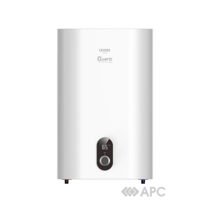 Водонагрівач електричний Quartz Levada 50 V 50 л – це сучасний накопичувальний бойлер середньої місткості. Він має пласку форму, що значно спрощує його розміщення в інтер'єрі, особливо в умовах обмеженого простору. Бойлер оснащений мідним «мокрим» (відкритим) нагрівальним елементом з потужністю 1800 Вт. Внутрішній бак на 50 літрів виготовлений зі сталі та покритий інноваційним матеріалом BIO-склофарфор, що гарантує надійний захист металу від корозії. Додатковий захист забезпечує встановлений магнієвий анод. Керування водонагрівачем здійснюється механічно за допомогою зовнішнього регулятора, але для більшої зручності на передній панелі розташований LCD-дисплей, що відображає поточну температуру та стан роботи. Водонагрівач встановлюється вертикально. Зовнішній корпус має міцне порошкове фарбування та якісну теплоізоляцію Super Foam, яка ефективно зберігає тепло, мінімізуючи втрати енергії.