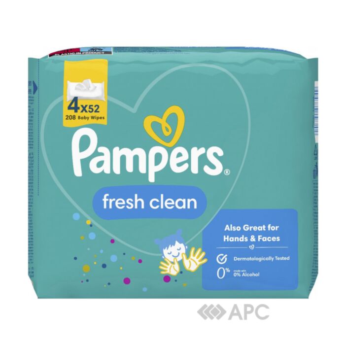 Вологі серветки Pampers Fresh Clean — це гігієнічна продукція, що призначена для очищення ніжної шкіри малюка з перших днів життя. Забезпечують повноцінний дбайливий догляд. Серветки виготовленні з натуральної целюлози, не містять спирту, силіконів та парабенів. Перевагою даного товару є його гіпоалергенна властивість. Пакування містить 208 серветок, 4 упаковки по 52 штук.