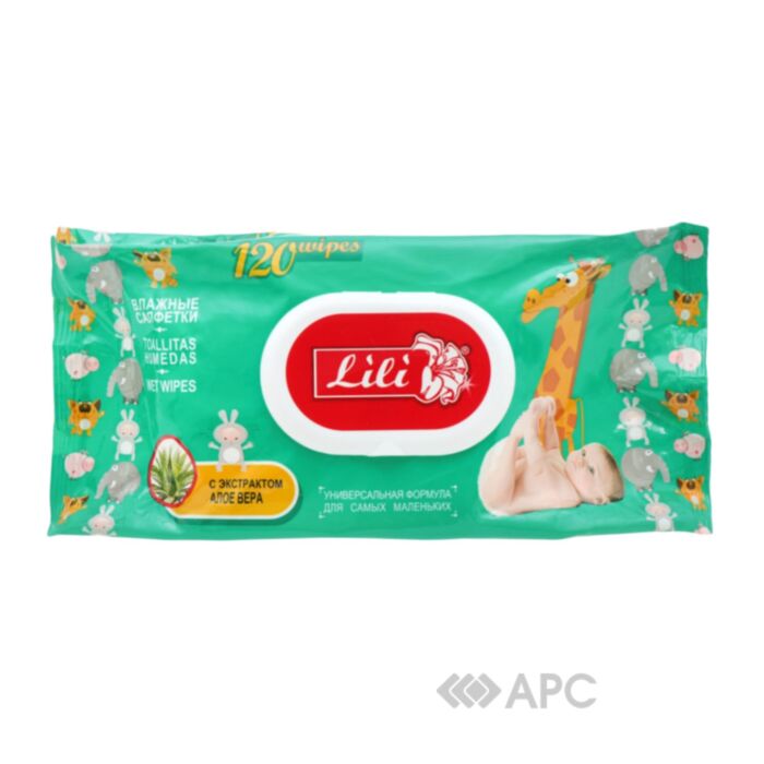 Вологі серветки LILI — це гігієнічний засіб, який призначений для делікатного очищення шкіри малюка будь-якого віку. М’яка та щільна текстура в просоченні з екстрактом алое забезпечує шкірі інтенсивне зволоження, протизапальну, антибактеріальну дію та ніжний догляд. Виготовлені із якісного, гіпоалергенного матеріалу, що має м’яку текстуру, не містять спирту, мають приємний аромат. Захисний клапан, що розміщений на упакуванні захищає продукцію від пересихання. Пакування налічує 120 штук.