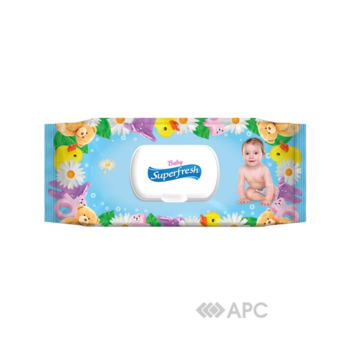 Вологі серветки SuperFresh — це універсальний засіб, що призначений для очищення ніжної шкіри малюка та мами. Вирізняються своєю антибактеріальною, пом’якшувальною дією, делікатно очищують шкіру, надають їй відчуття шовковистості та свіжості. У своєму складі мають екстракт ромашки, а також вітамін Е, який сприяє швидкому загоєнню ранок, не містить спирту. Виготовлені на основі високоякісного, гіпоалергенного, нетканого матеріалу, з ніжним ароматом ромашки. Упакування містить клапан, що щільно закривається і запобігає швидкому висиханню продукції, налічує 72 штуки.