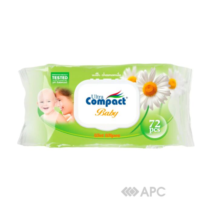 Вологі серветки Ultra Compact — це продукція, що призначена для ніжного очищення шкіри малюка та його мами. Вони не пересушують шкіру, запобігають подразненню, мають м’яку, щільну текстуру, надають відчуття свіжості та комфорту, без них просто не обійтись при заміні підгузків. Зручно брати з собою на прогулянку, без спирту. Пакування налічує 72 штук, закриваються клапаном, який захищає їх від пересихання.