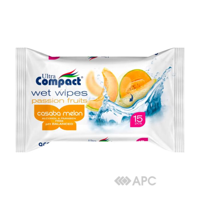 Вологі серветки Ultra Compact — це класична, гігієнічна продукція українського виробництва, що призначена для ефективного очищення шкіри рук та тіла. Характеризуються дбайливим очищенням, надають шкірі відчуття комфорту та свіжості після використання, містять нейтральний рівень pH, без спирту. Мають м’яку, приємну на дотик текстуру, з приємним тропічним ароматом. Пакування вміщує 15 штук.