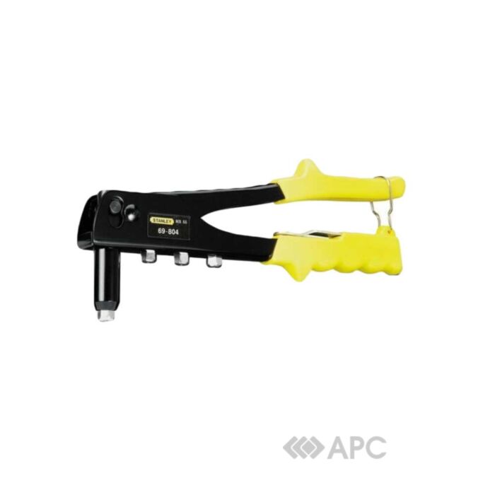 Заклепувальний пістолет Stanley 0-69-804-7 - використовується для роботи з заклепками із м'яких металів, як алюміній та мідь. Іноді інструмент може використовуватись для скріплювання виробів з сталі та нержавіючої сталі. Він підходить для роботи в труднодоступних місцях, для невеликих обсягів роботи - до 200 заклепок в день. Монтаж відбувається завдяки фізичній силі працівника, а швидкість монтажу однієї заклепки приблизно становить 15 секунд.