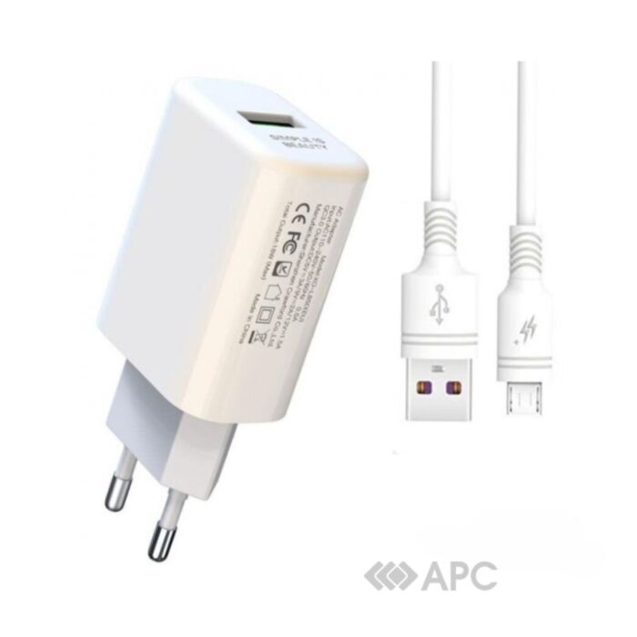 Зарядний пристрій мережевий XO L85D QC3.0 18W Micro B – це компактний адаптер живлення, що забезпечує високу швидкість зарядки мобільних пристроїв. Він підтримує технологію Quick Charge 3.0 (QC 3.0), яка дозволяє зарядити сумісні пристрої значно швидше порівняно зі стандартними зарядними пристроями. Максимальна вихідна потужність адаптера складає 18 Вт. Зарядний пристрій оснащений одним вихідним портом USB Type-A. У даній комплектації в комплекті постачається кабель USB на Micro USB (Micro B), що робить його ідеальним рішенням для власників застарілих моделей смартфонів, планшетів та інших аксесуарів, які використовують саме цей тип роз'єму. Пристрій має вбудовану багатоступеневу систему захисту від основних електричних загроз, таких як перегрів, коротке замикання та перевантаження по струму.
