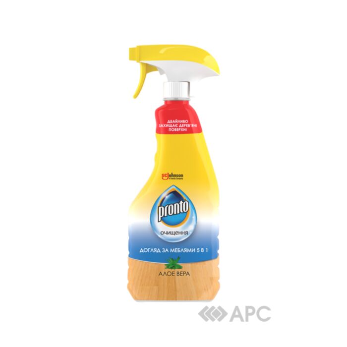 Засіб для догляду за меблями Pronto 5в1 Алое відмінно справляється зі своєю основною задачею та став найкращим серед виробів у цій сфері. Відмінна формула повністю безпечна, тому не дасть шкідливого впливу на здоров’я. Спрей очистить поверхні будинку від пилу, створить захист надалі. Продукт економно використовується, тому банки об’ємом 500 мл вистачає на декілька місяців. Чистота, блиск та приємний аромат алое наповнять ваш будинок, а процес прибирання стане комфортнішим.