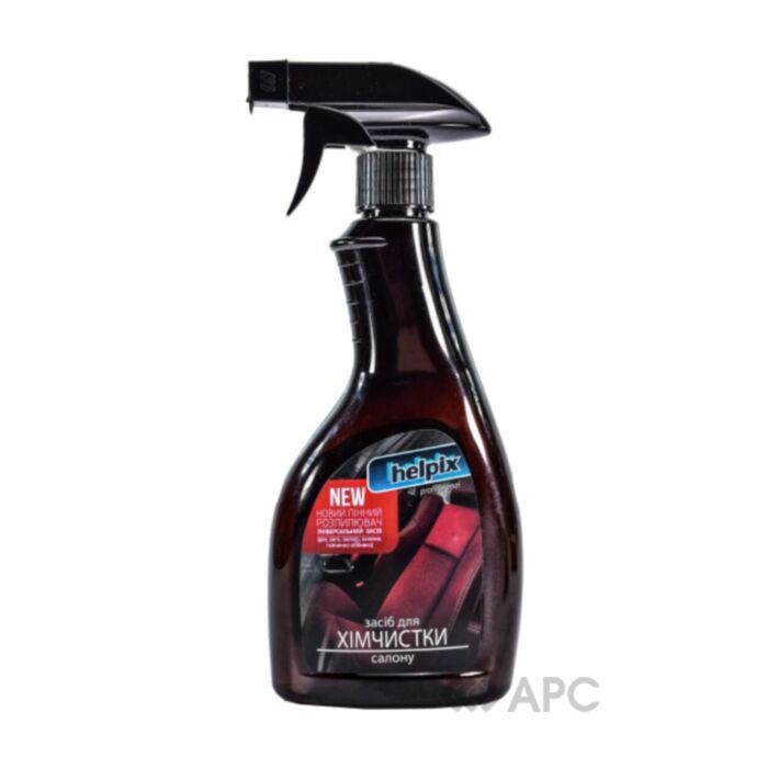 Засіб для хімчистки салону Helpix Professional — універсальний засіб для очищення тканинних, велюрових, вінілових поверхонь вдома та в автомобілі: м’яких меблів, килимів, оббивки стелі, підлоги, сидінь в машині. Завдяки своїй потужній антисептичній дії, ефективно видаляє забруднення різного походження, повертає свіжість та чистоту. Розпилювач перетворює рідину на активну піну, що легко наноситься та швидко діє, усуваючи навіть застарілі плями. Об’єм — 500 мл.