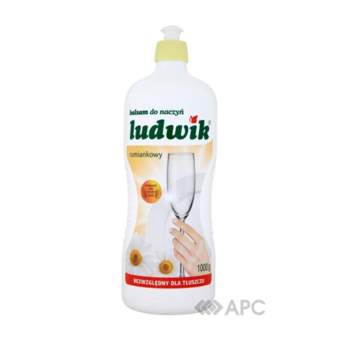 Засіб для миття посуду Ludwik Ромашка 900 мл — ефективно очищує забруднення, жир, залишки їжі зі столових приборів, тарілок, чашок та інших кухонних виробів. М’яка формула з комплексом натуральних інгредієнтів лагідно діє на шкіру рук, не викликає сухості. Ефективно діє як в гарячій, так і холодній воді. Присутній легкий аромат, що робить користування ще приємнішим. Об’єм флакона з пуш-пул 900 мл.