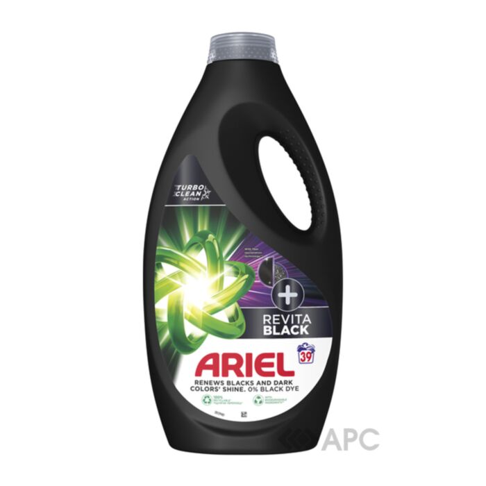 Засіб для прання рідкий ARIEL Revitablack 78880 1,95 л призначений для очищення темного і чорного одягу, повертає йому яскравість та привабливий вигляд. Спеціальна технологія відновлення структури волокон дозволяє відпирати стійкі плями, зберігаючи при цьому яскравий колір та естетичну привабливість одягу. Для обробки важких плям рекомендовано наносити засіб на забруднення перед тим, як покласти речі в барабан пральної машини. ARIEL забезпечує відмінний результат навіть у холодній воді. Гель підходить для автоматичного і ручного прання всіх видів білизни. Має приємний запах, дарує свіжість, чистоту та зберігає яскравий колір текстильних виробів.