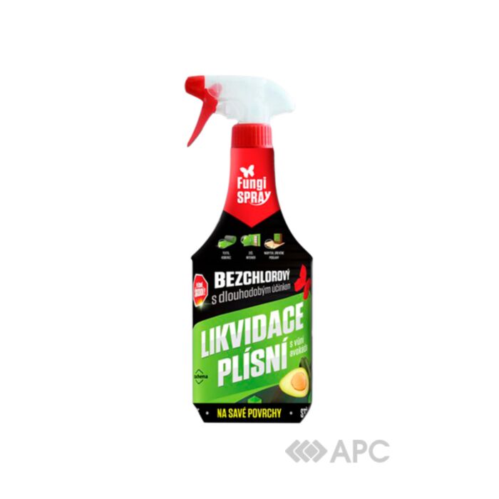 Видалити сліди грибка і цвілі з різних поверхонь допоможе препарат FungiSPRAY. Він не містить хлору. Справляється з очищенням таких поверхонь як штукатурка, бетон, дерево, текстиль та іншими. Широко застосовується в виробничих і житлових приміщеннях, лікувальних установах, закладах харчування і т.д. Уражені ділянки обприскуються (на відстані близько 10 см), після чого волога цвіль видаляється через 24 години механічним методом (щіткою або ганчіркою). Надає тривалий ефект.