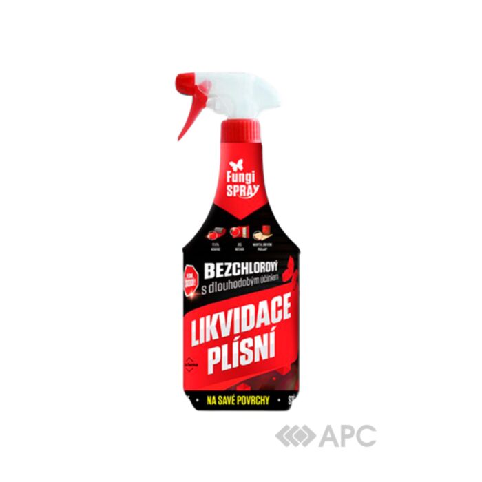 Видалити сліди грибка і цвілі з різних поверхонь допоможе препарат FungiSPRAY. Він не містить хлору. Справляється з очищенням таких поверхонь як штукатурка, бетон, дерево, текстиль та іншими. Широко застосовується в виробничих і житлових приміщеннях, лікувальних установах, закладах харчування і т.д. Уражені ділянки обприскуються (на відстані близько 10 см), після чого волога цвіль видаляється через 24 години механічним методом (щіткою або ганчіркою). Надає тривалий ефект.