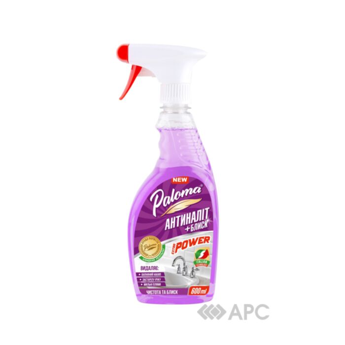Засіб від нальоту Paloma Антиналіт+Блиск відмінно очищує поверхні від застарілих стійких плям. Унікальна формула діє зсередини, ретельно видаляє бруд, надаючи приміщенню первинного блиску та сяяння. Завдяки мінімальним витратам продукту об’єму банки 600 мл вистачить не на один місяць використання. Приємний запах, легкість в експлуатації, зручність — це все характеризує даний спрей.
