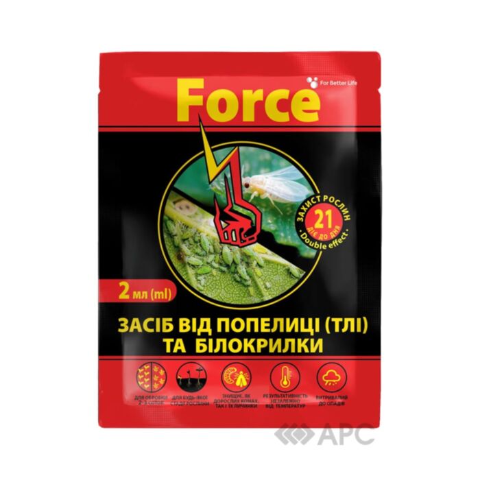 Засіб від тлі Force — це висококонцентрований інсектицид, розроблений для швидкого та ефективного знищення широкого спектра комах-шкідників на ділянці.
