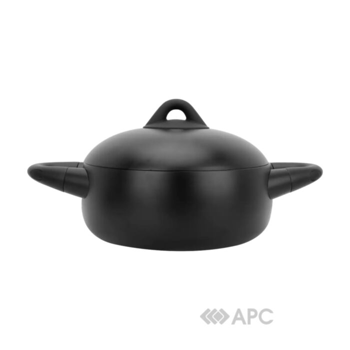 Жаровня Pepper Чорна перлина PR-2243 24*7 см — це функціональний та стильний кухонний аксесуар, який стане незамінним помічником у приготуванні улюблених страв. Виготовлена зі штампованого алюмінію товщиною 3 мм, вона забезпечує рівномірний нагрів і зберігає тепло, дозволяючи економити час і енергію. Внутрішнє тришарове антипригарне покриття Pfluon чорного кольору гарантує стійкість до подряпин, легкість у догляді та можливість готувати з мінімальною кількістю олії. Ручка з бакеліту з м'якими силіконовими вставками чорного кольору забезпечує надійність при експлуатації, а ефект soft touch робить використання приємним і безпечним. Жаровня сумісна з усіма типами плит, включаючи індукційні, завдяки спеціальному індукційному дну з лазерним логотипом. Завдяки об'єму і діаметру, вона ідеально підходить для приготування страв на сім'ю чи гостей.