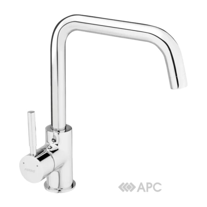 Змішувач для кухні Ferro Ratio BTI4 — це сучасний кухонний аксесуар, що вирізняється стильним дизайном і високою функціональністю. Виконаний у хромованому кольорі, він надає інтер’єру елегантності та вишуканості, підкреслюючи новітній підхід до оформлення простору. Прилад оснащений надійним керамічним картриджем, який забезпечує тривалу і безперебійну роботу, дозволяючи точно контролювати температуру і потік води. Монтаж здійснюється на один отвір, що робить його встановлення простим та зручним. Ferro Ratio виготовлений з високоякісної латуні, ця характеристика гарантує довговічність і стійкість до корозії. Гнучке підведення води G 3/8 забезпечує легке підключення до водопровідної системи. Одноважільний механізм управління додає змішувачу зручності у використанні, роблячи його ідеальним вибором для сучасної кухні.