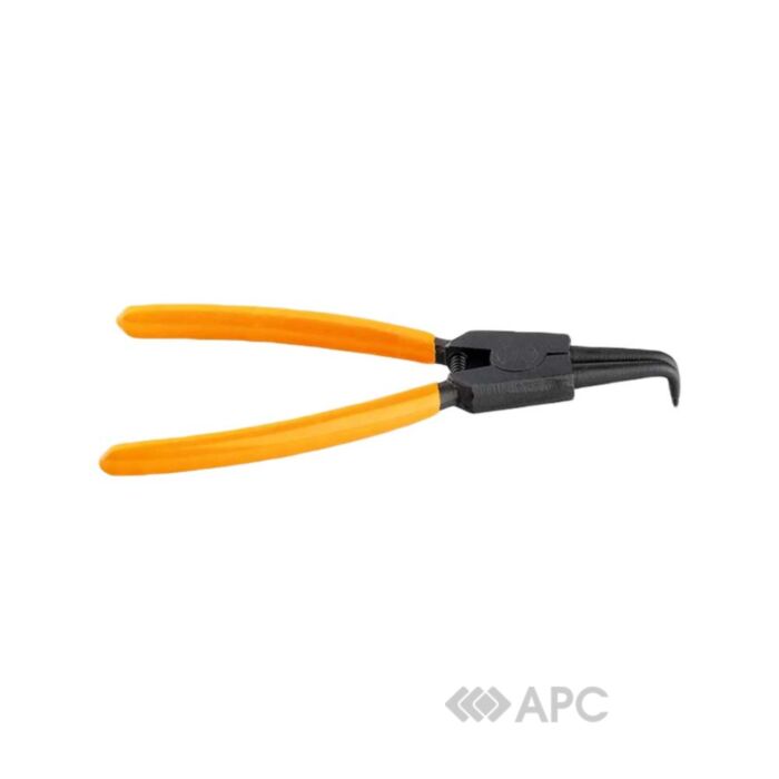 Знімач для зовнішніх стопорних кілець Sparta 183205 зігнутої форми. Стопорні кільця часто використовують для фіксації підшипників. Але навіть незважаючи на знижений рівень тертя кочення, підшипники доводиться час від часу замінювати. Тут знадобиться представлений інструмент. Наконечники відрізняються твердістю, а форма дозволяє стопорним кільцям не зісковзувати.