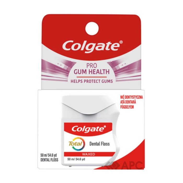 Зубна нитка Colgate Total 50 м призначена для забезпечення щоденної гігієни рота. Вощене волокно ефективно видаляє наліт у міжзубних проміжках та під лінією ясен, де не може дістати зубна щітка. Це допомагає боротися з бактеріями, знижує ризики виникнення карієсу та захворювань м'яких тканин. Засіб легко ковзає між зубами, видаляючи залишки їжі, не пошкоджуючи ясен, та залишає свіжий м’ятний смак у роті. Зручне пакування дозволяє легко користуватися ним чи брати в дорогу. Для ретельного очищення взяти 30-40 см нитки, вставити у міжзубний проміжок та обережно переміщати вгору і вниз. При регулярному використанні засіб захищає від стоматологічних захворювань, дбає чистоту та свіжість дихання.