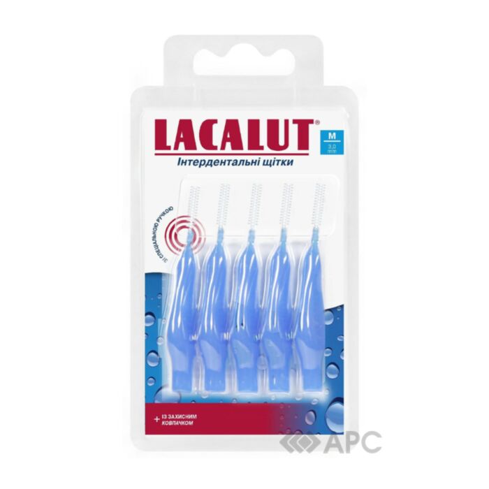Зубна щітка Lacalut Інтердентальна М – це спеціалізований інструмент для чищення зубних проміжків, брекетів та протезів. Вона допомагає видаляти бактеріальний наліт, який накопичується між зубами і є основною причиною карієсу та захворювань ясен (гінгівіту, пародонтиту). Звичайна щітка не завжди здатна якісно очистити ці зони. Виріб виготовлений з хірургічного сплаву, покритий ізоляційним пластиком для уникнення гальванічних струмів при наявності металевих елементів на зубах. Чищення здійснюється зворотно-поступальними та обертальними рухами за годинниковою стрілкою. Щетинки середньої жорсткості забезпечують ефективне очищення, вони досить пружні, щоб видаляти наліт, але при правильному використанні не травмують м'які тканини.