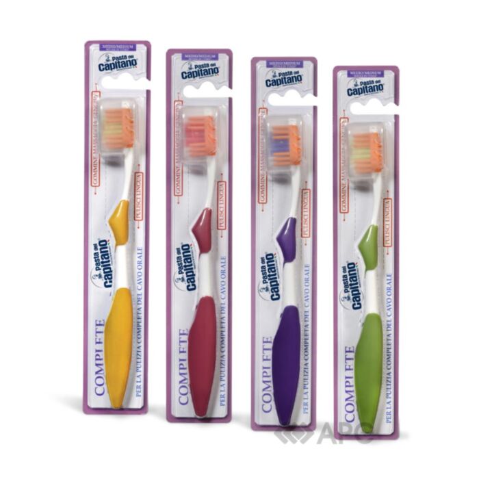 Зубна щітка Pasta Del Capitano Complete Professional Medium — це аксесуар, що використовується для забезпечення ефективного догляду за ротовою порожниною. Середня жорсткість щетинок дозволяє ефективно видаляти наліт та залишки їжі, не пошкоджуючи емаль чи ясна. Оптимальна форма гнучкої головки дозволяє з легкістю досягати навіть найвіддаленіших зон рота.